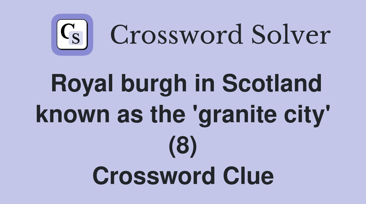 Royal burgh in Scotland known as the #39 granite city #39 (8) Crossword