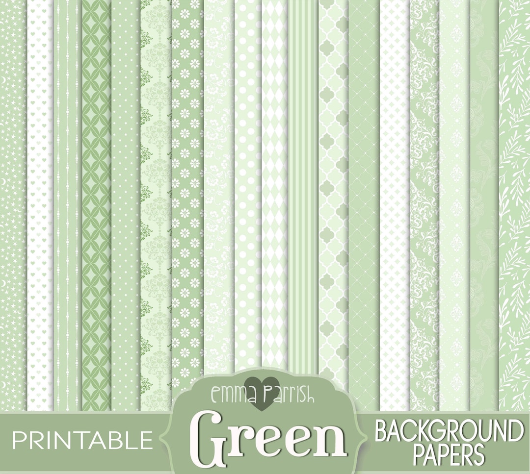 Green Patterned Printable Paper Kit for Junk Journal Scrapbook