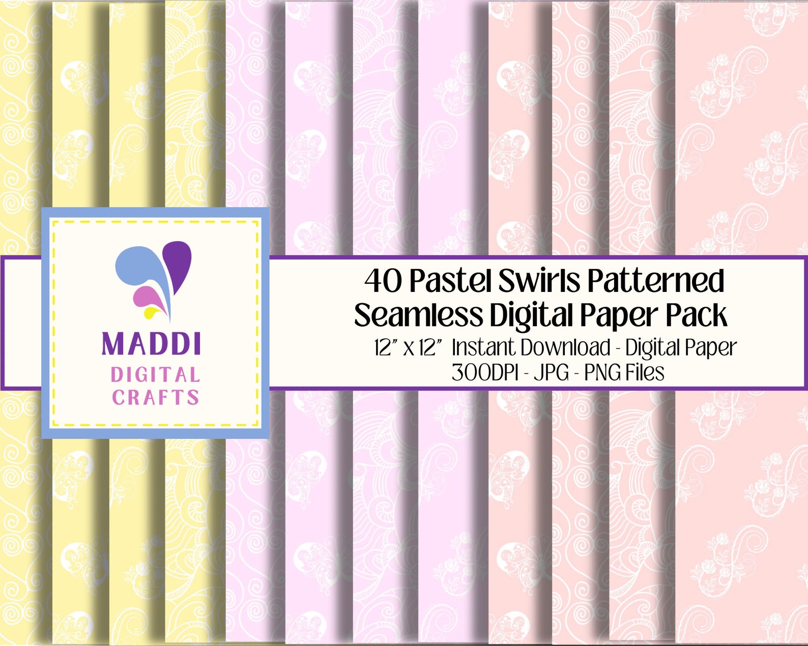 Swirl Floral Patterned Printable Paper Pastel Digital Downloadable 12 X