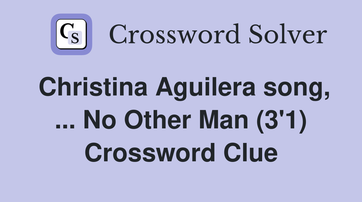 Christina Aguilera song No Other Man (3 #39 1) Crossword Clue