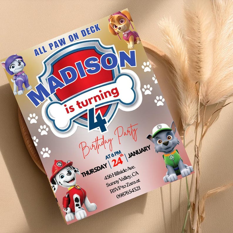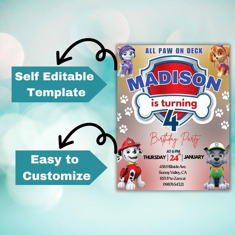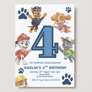 Paw Patrol 4th Birthday Invitation Canva Etsy