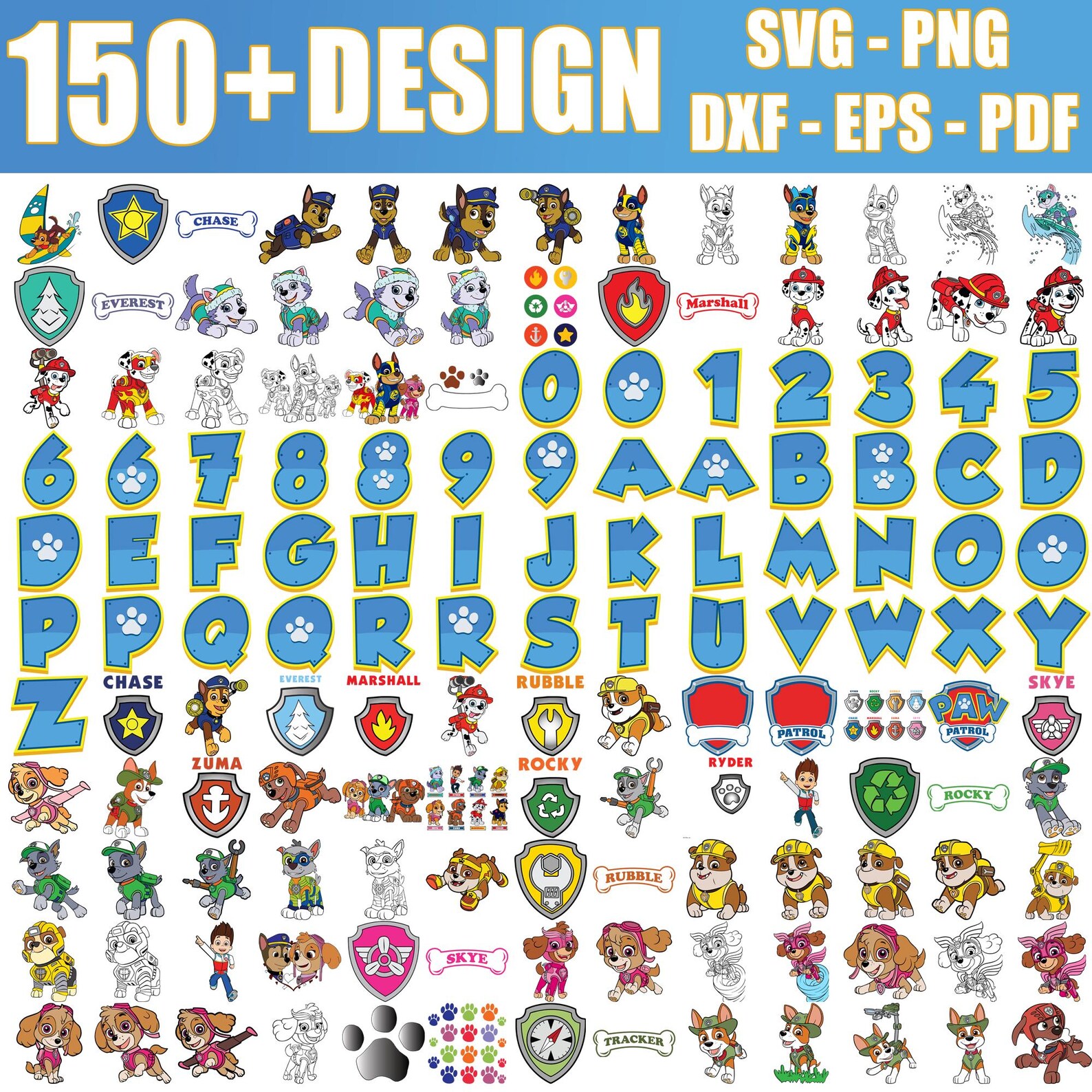 750 Paw Patrol File SVG PNG DXF Bundle Kids Birthday Designs Cricut