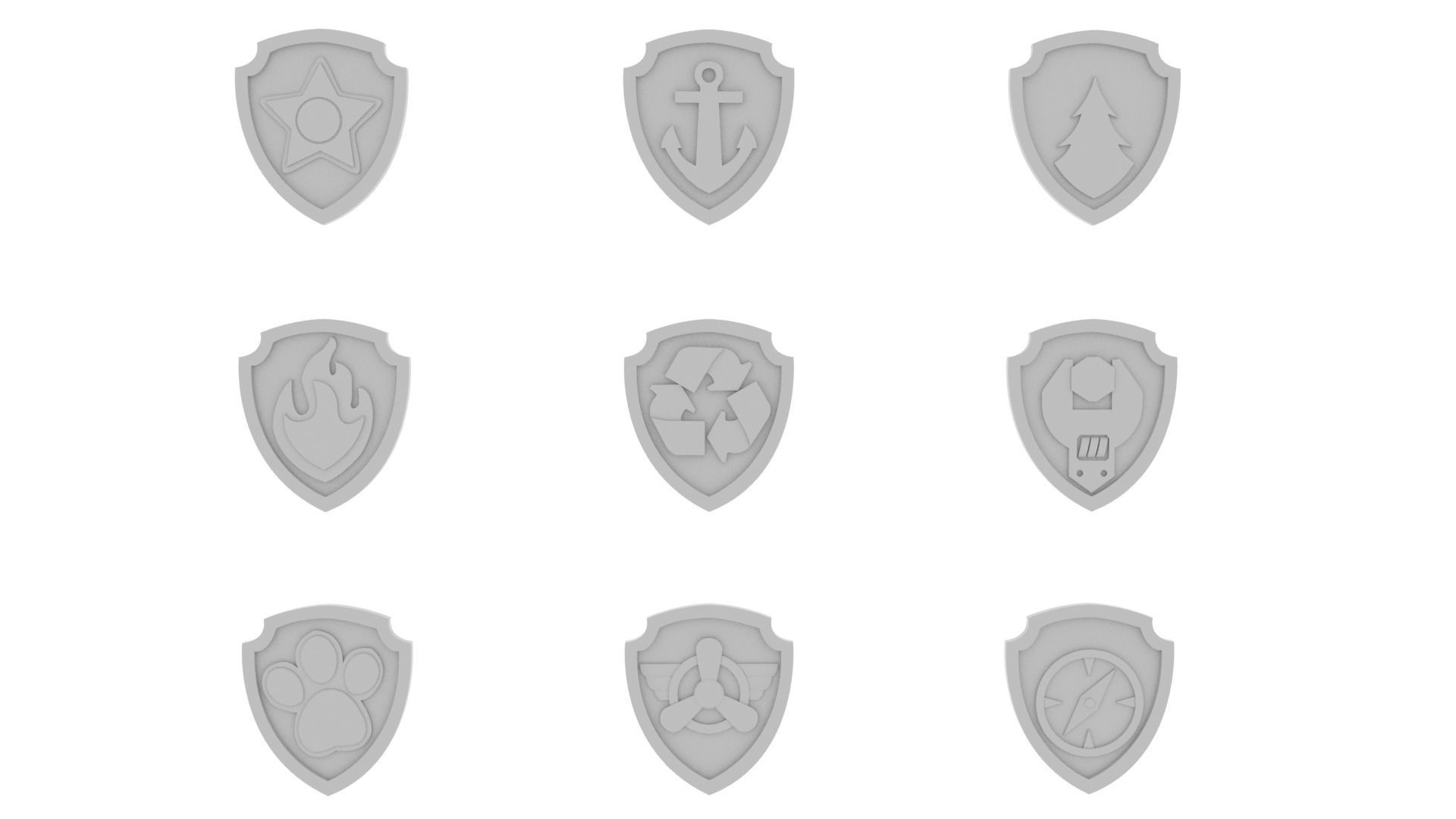 Paw Patrol Fan Emblem Set 3D Printable for Kids 3D model 3D printable