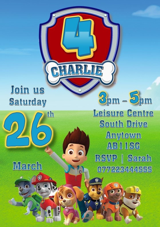 Paw Patrol Invitations Paw Patrol Invitation Etsy