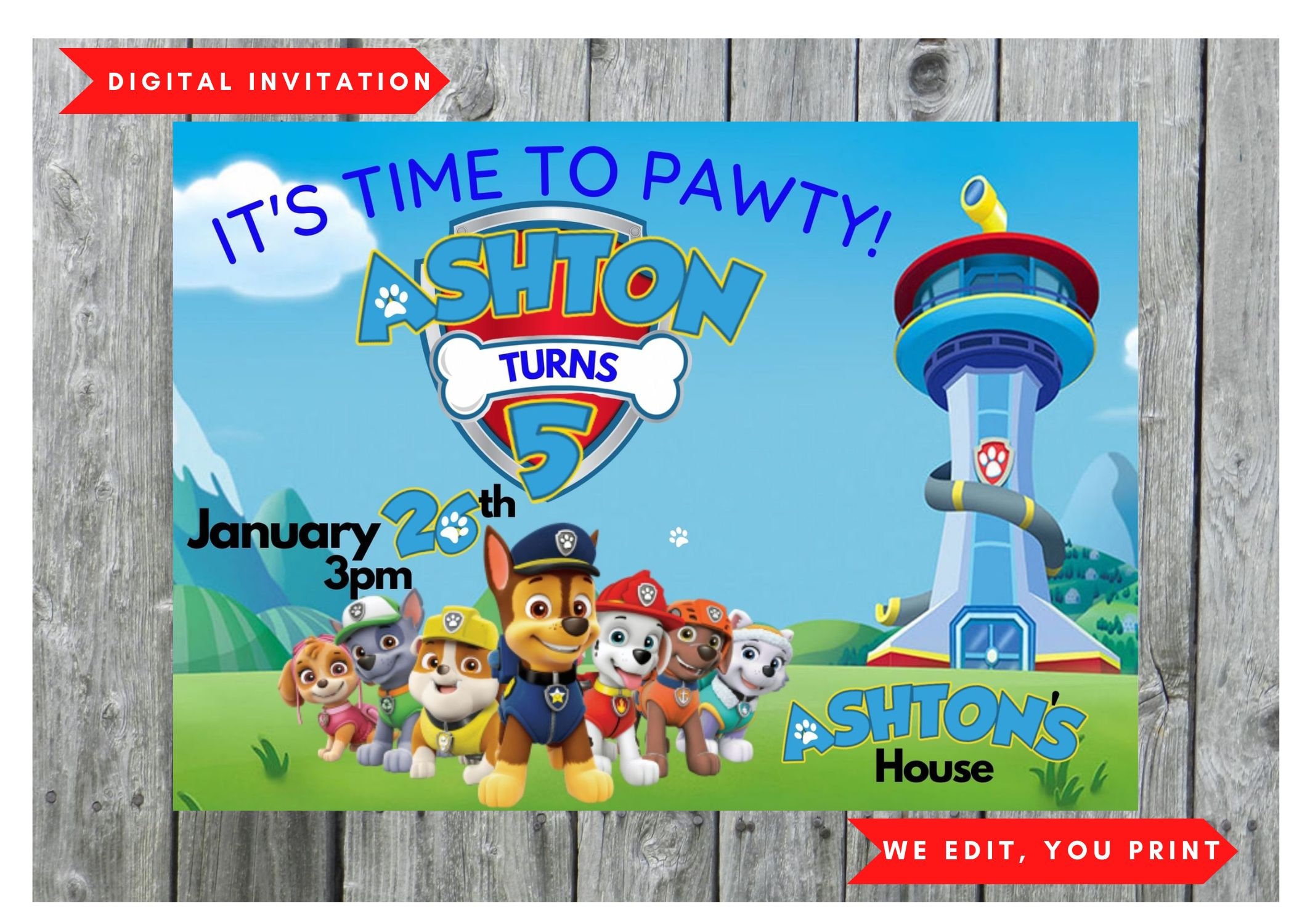Custom Paw Patrol Birthday Invitation PRINTABLE DIGITAL DOWNLOAD Paper