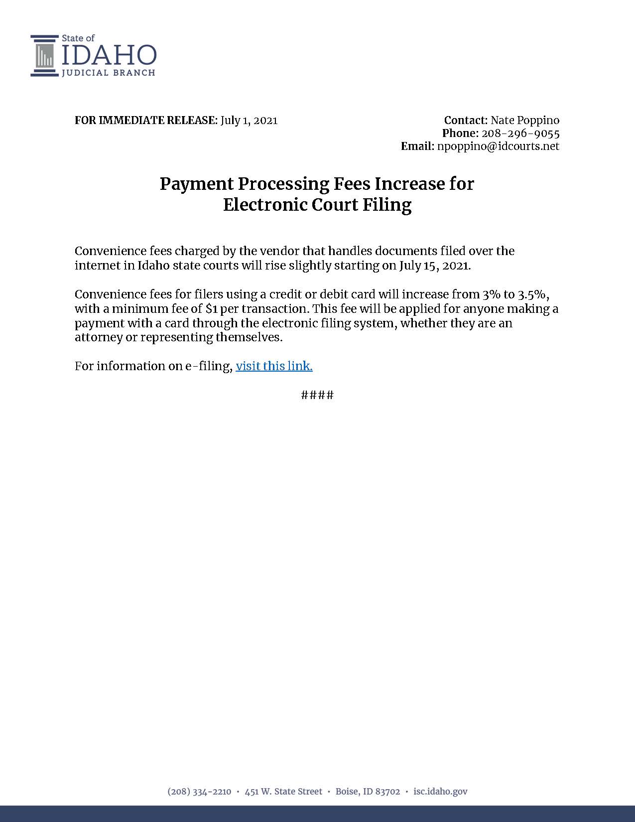 Payment Processing Fees Increase for Electronic Court Filing Idaho