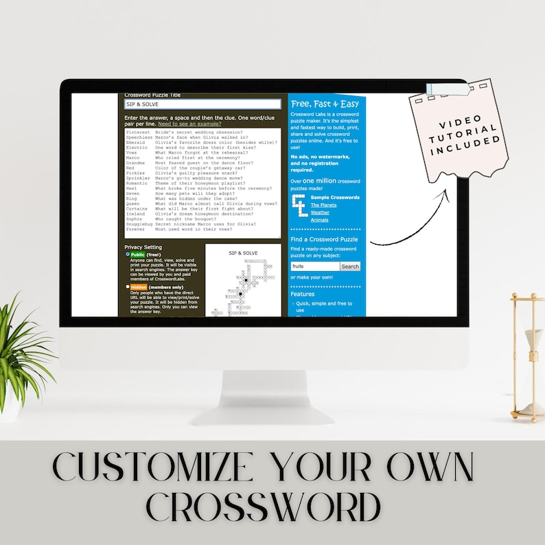 Hand Drawn Wedding Crossword Puzzle Sip and Solve Game Template