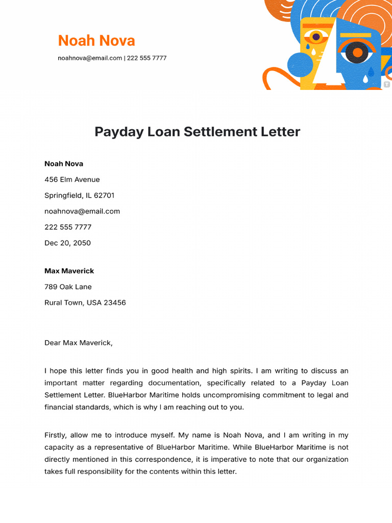 Free Payday Loan Settlement Letter Template to Edit Online