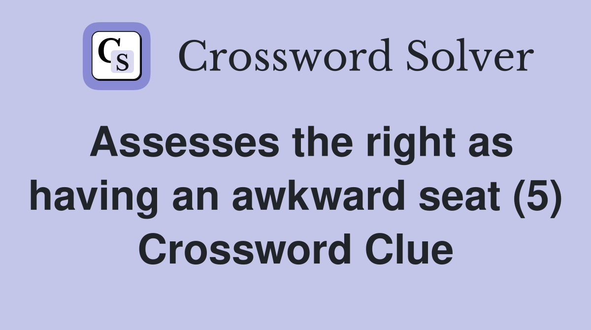 Assesses the right as having an awkward seat (5) Crossword Clue