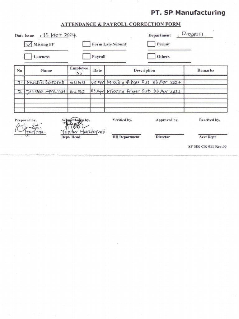Attendance Payroll Correction Form PDF