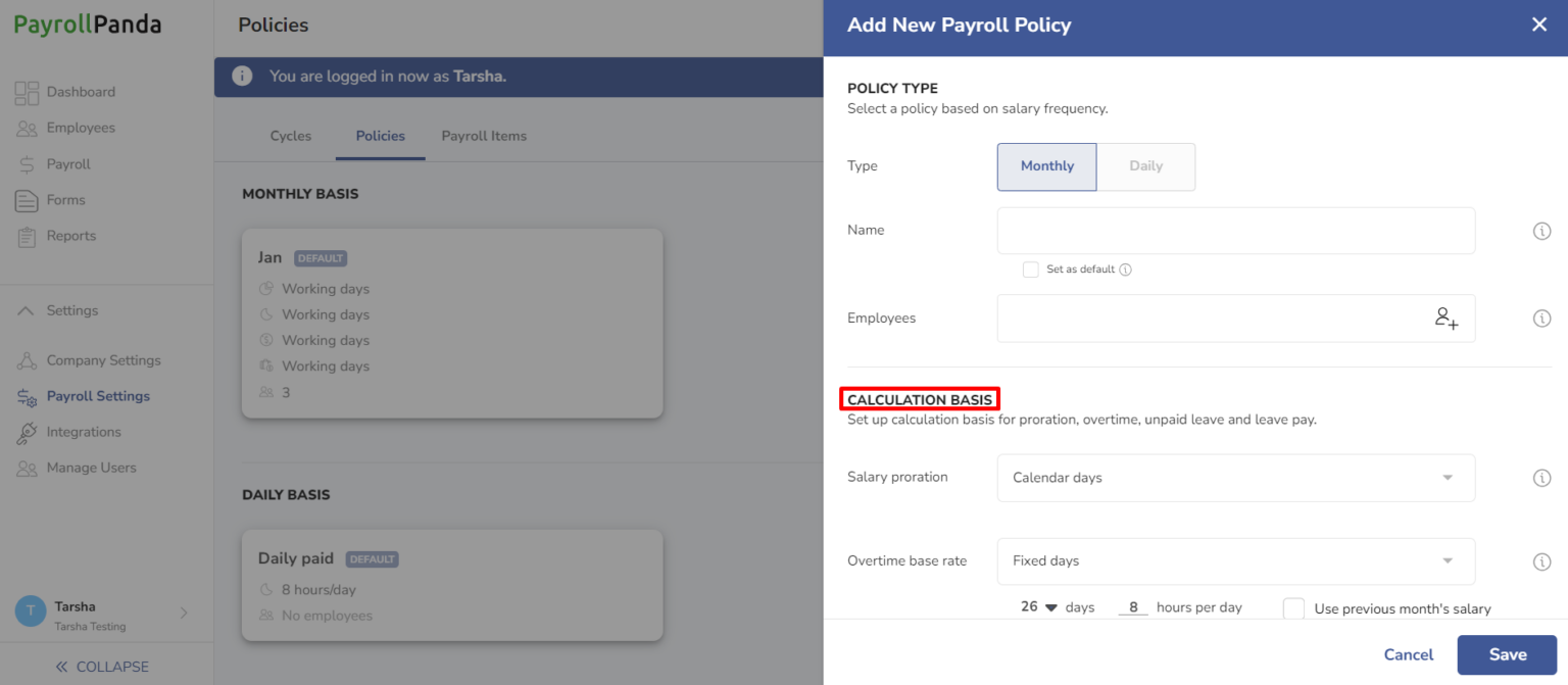 How to set different payroll policies? PayrollPanda