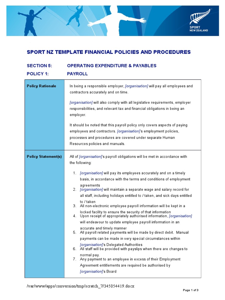 Sport NZ Template Financial Policies and Procedures: Section 5