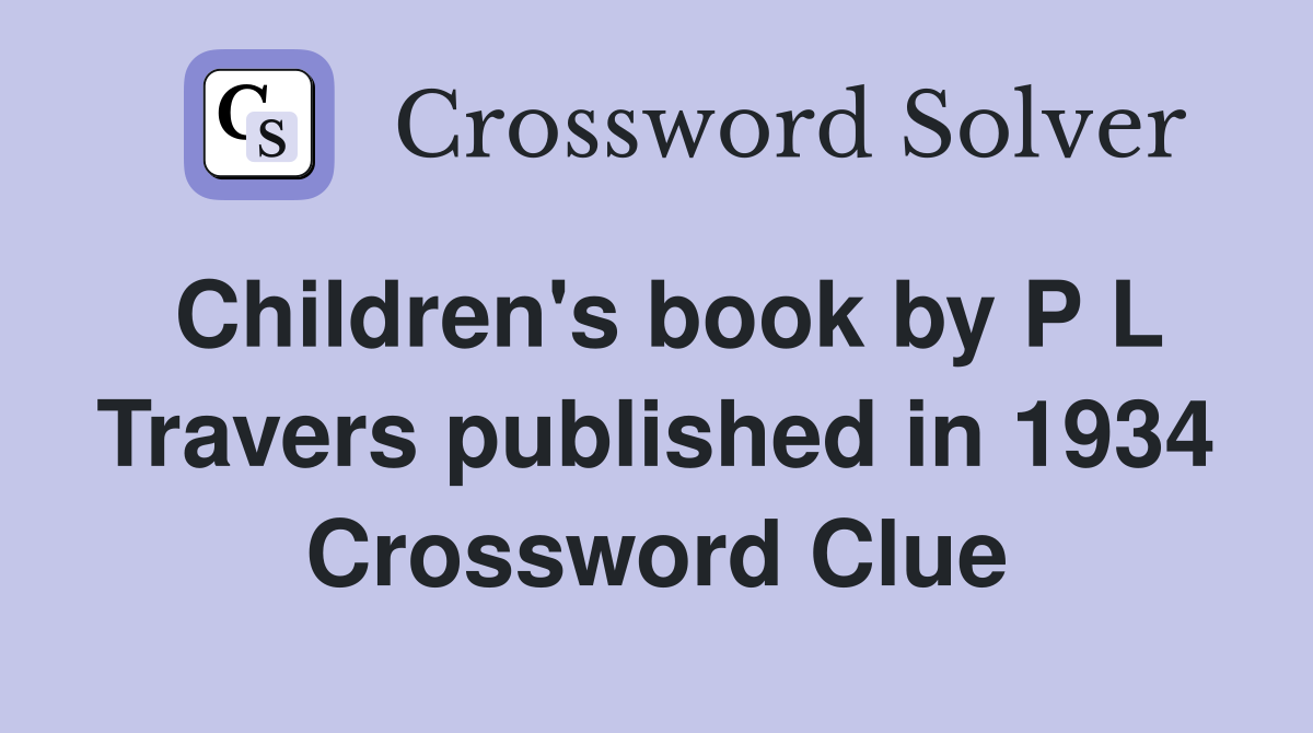 Children #39 s book by P L Travers published in 1934 Crossword Clue