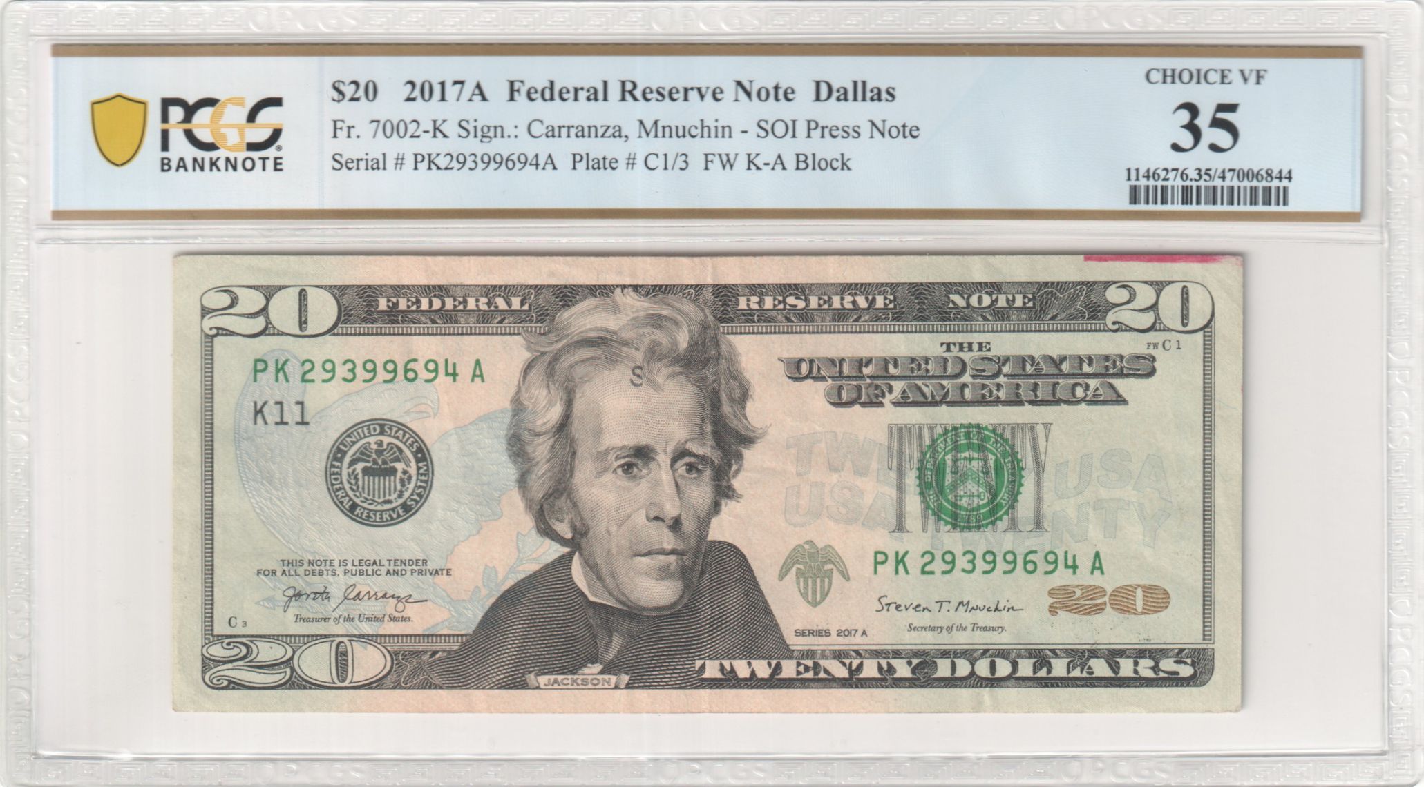 PCGS Certificate Verification Banknote Details for Cert #47006844