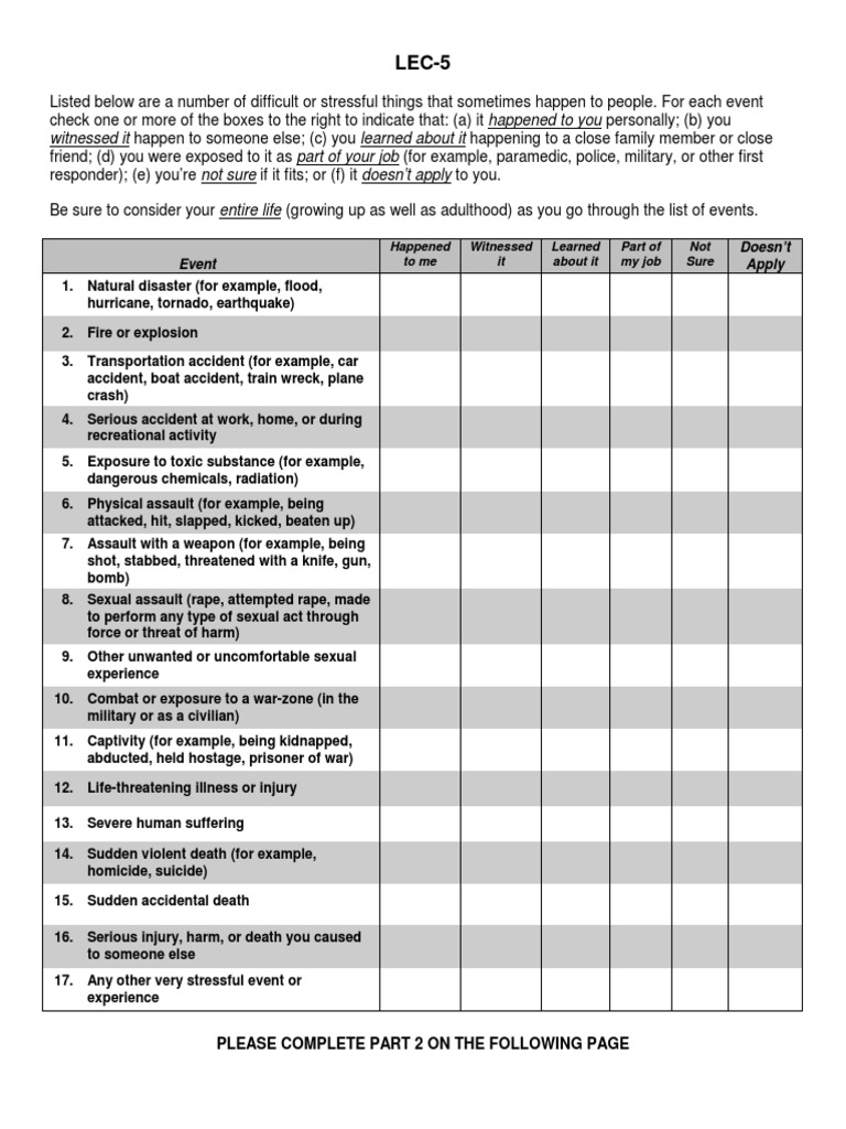 PTSD Checklist (PCL 5) Example Free PDF Download 60% OFF