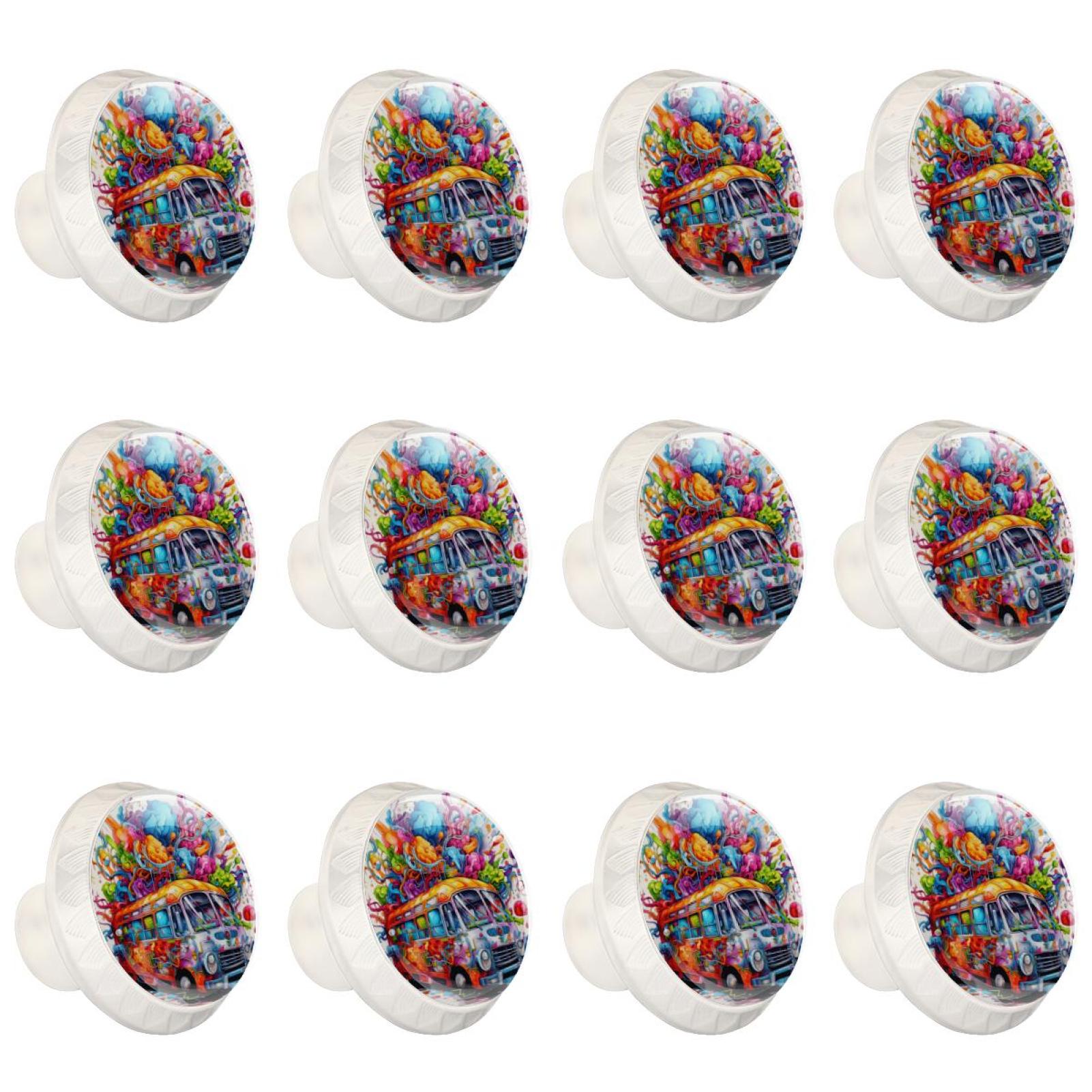 Brain Car 12 Pcs White Round Drawer Pulls with Screws ABS and Glass