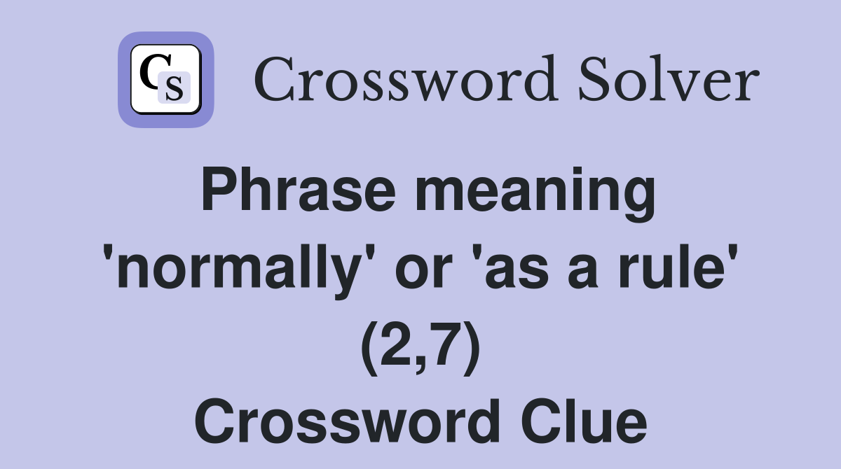 Phrase meaning #39 normally #39 or #39 as a rule #39 (2 7) Crossword Clue Answers