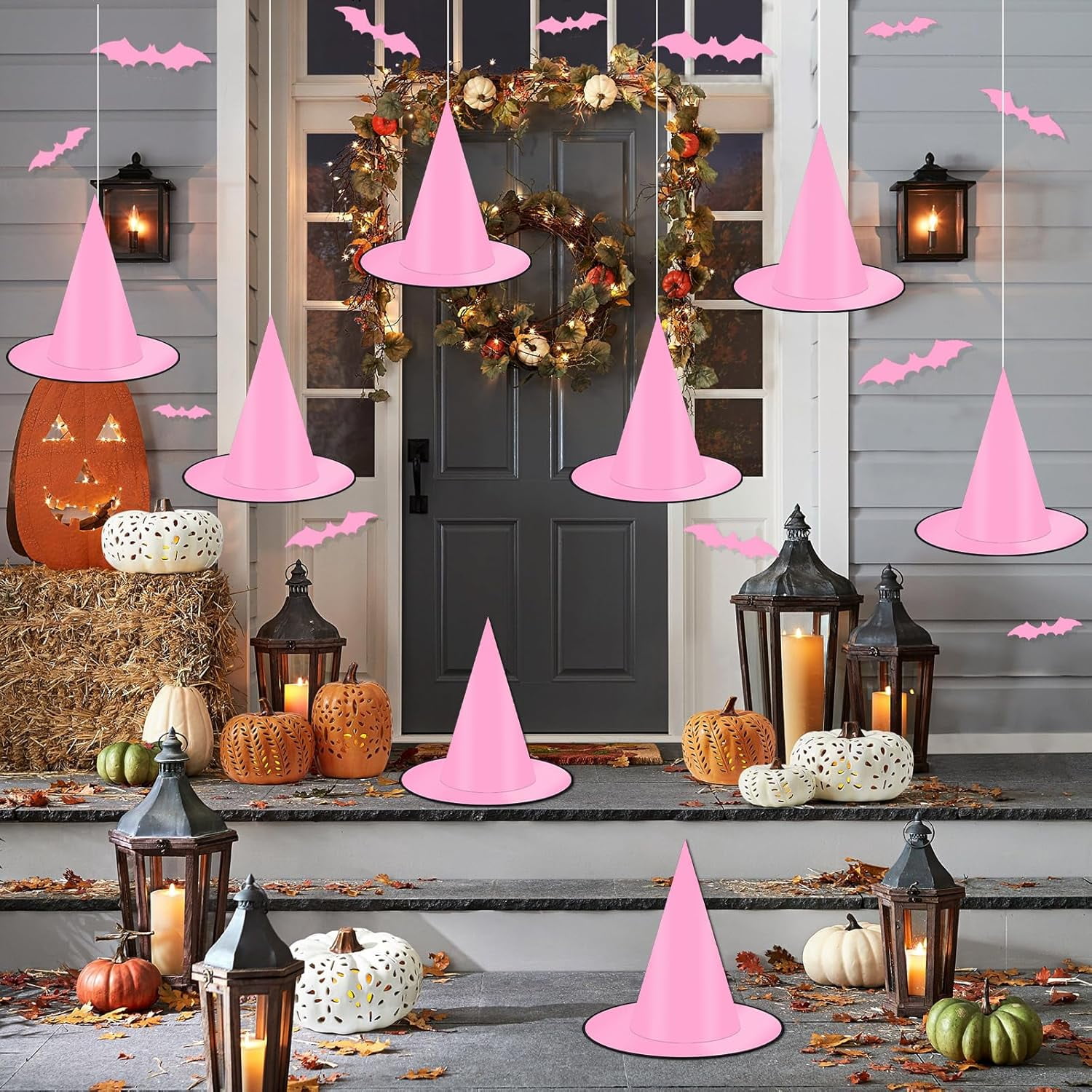 12 PCS Hanging Witch Hats Black/Pink 16 PCS 3D Bats Stickers for