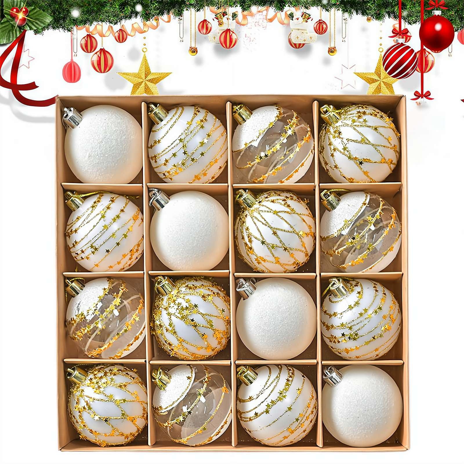 16 PCS Christmas Baubles Decorative Christmas Balls Electroplated