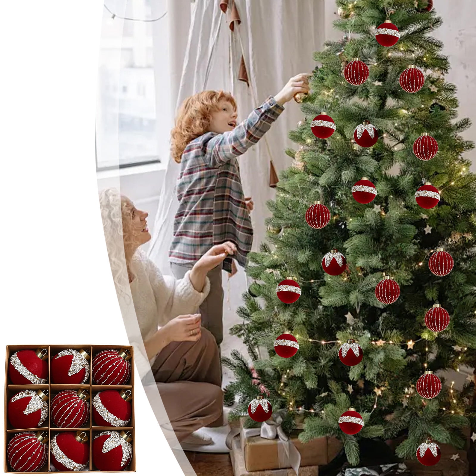 Flocking Painting Set 9 Pcs 8cm Christmas Ball Painted Tree Pendant