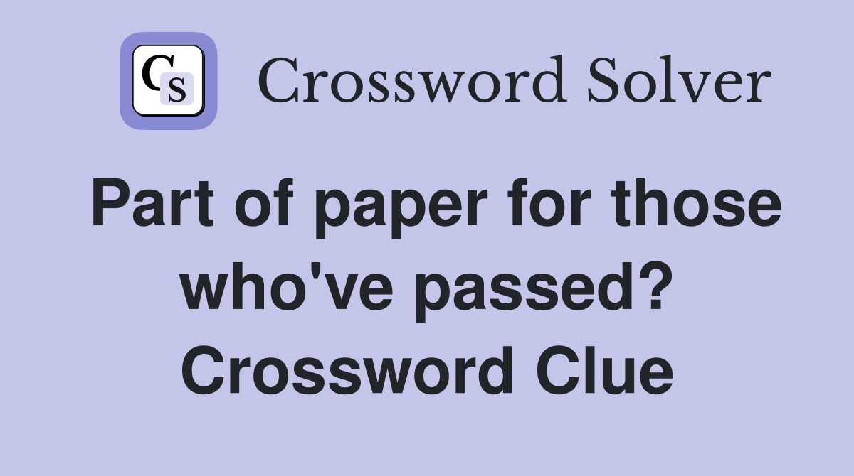 Part of paper for those who #39 ve passed? Crossword Clue Answers