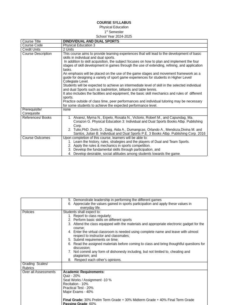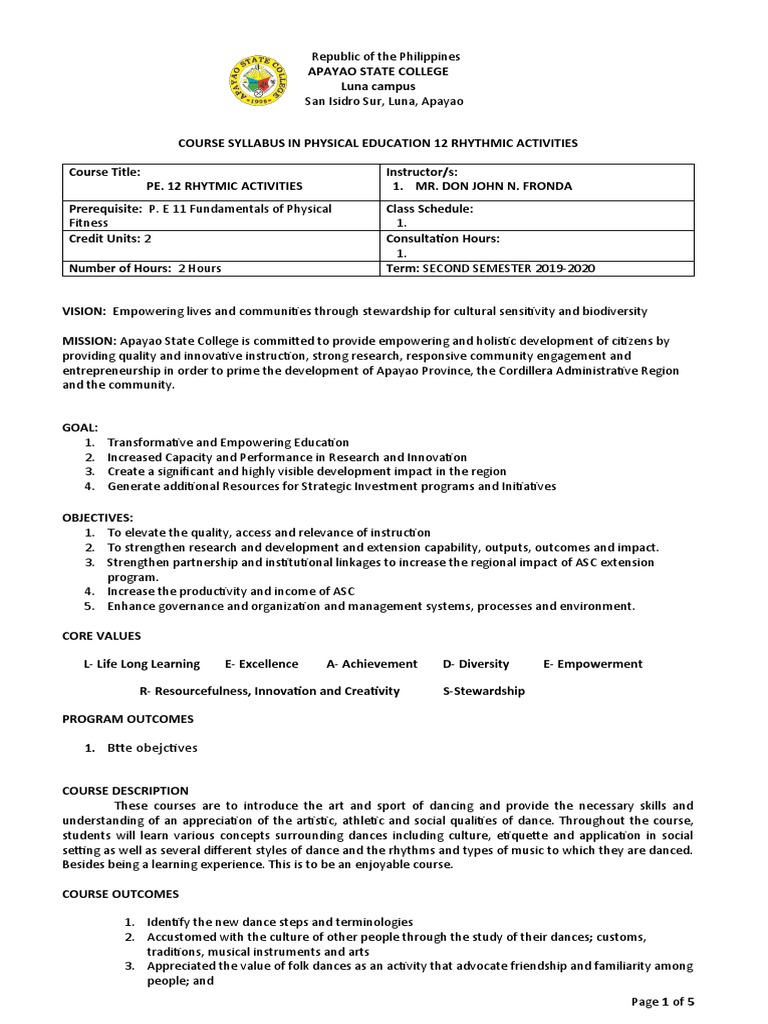 COURSE SYLLABUS PE PDF Physical Education Pedagogy