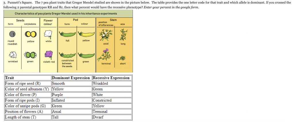 Solved 3 Punnett #39 s Square The 7 pea plant traits that Chegg com