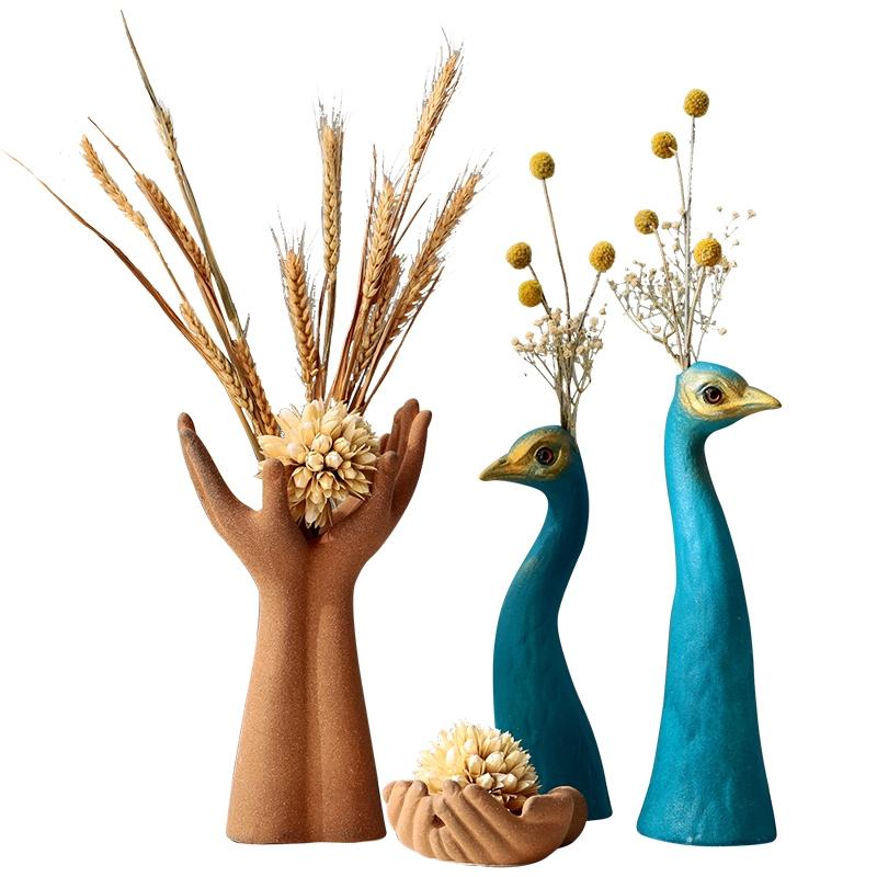 Blue Peacocks Ceramic Vase Decorative Crafts Flowe Vicedeal
