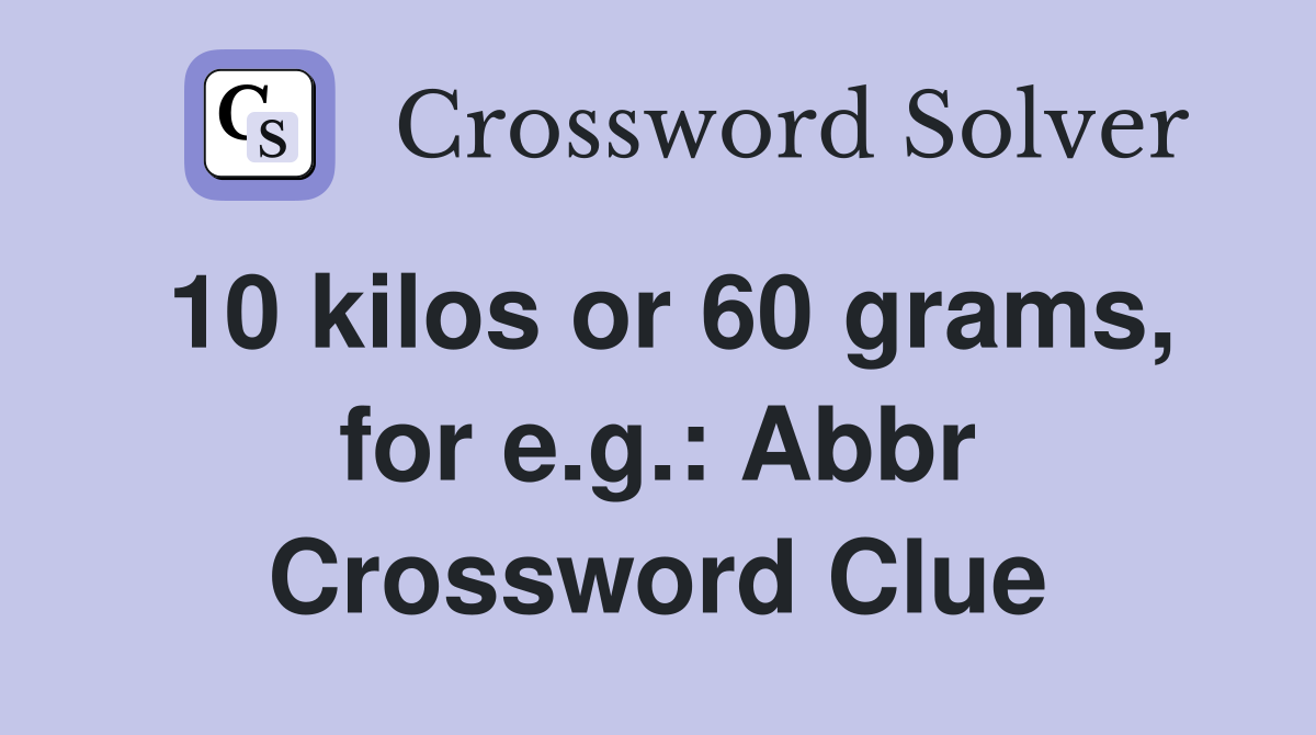 10 kilos or 60 grams for e g : Abbr Crossword Clue Answers