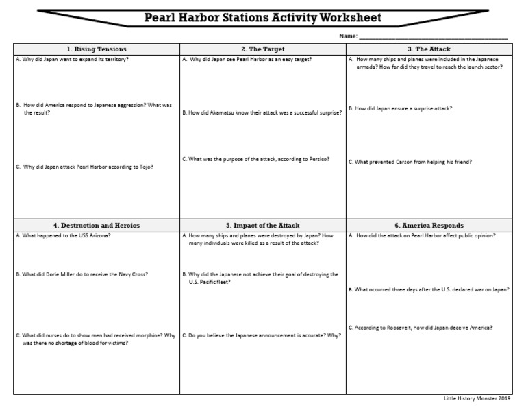 Pearl Harbor Stations Activity Worksheet Studentpdf PDF Attack On