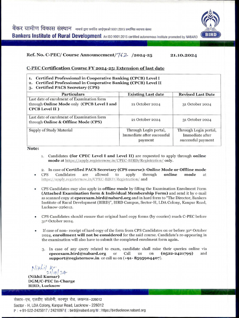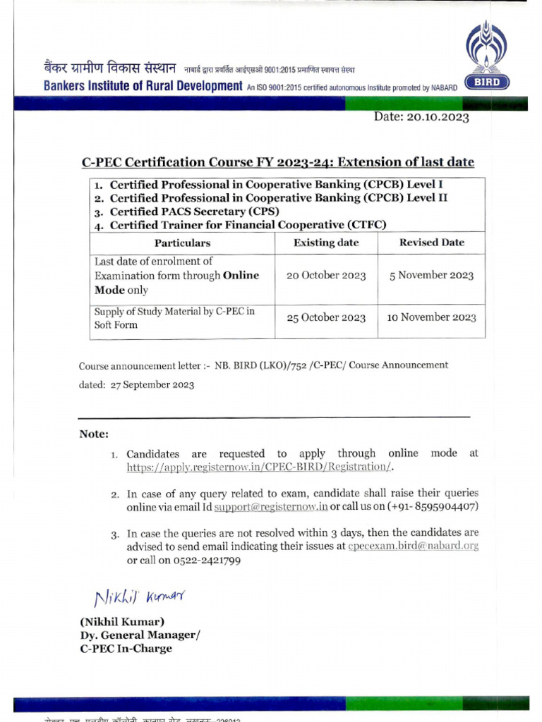 Extension of Last Date C PEC Certification Course 0001 PDF
