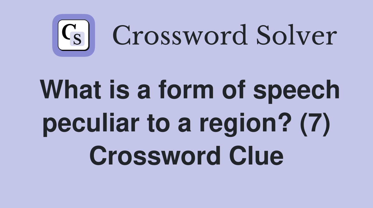 What is a form of speech peculiar to a region? (7) Crossword Clue