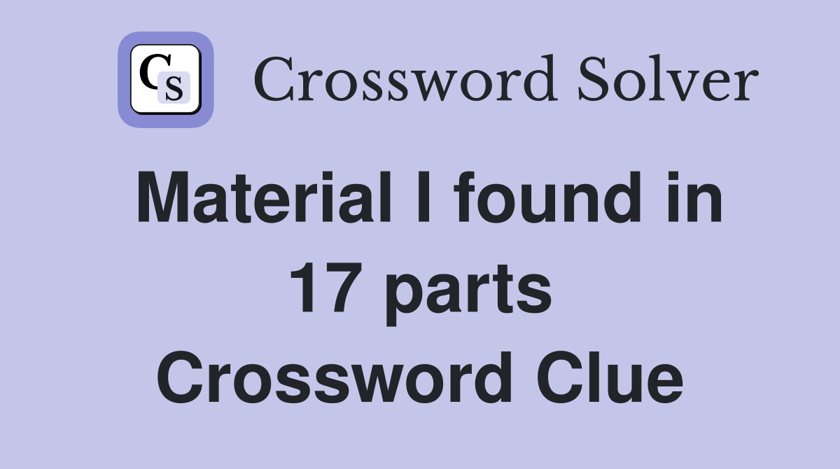 Material I found in 17 parts Crossword Clue Answers Crossword Solver