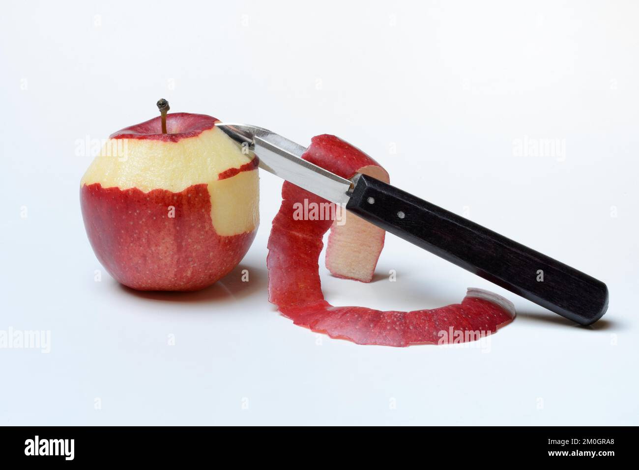 Peeled apple with peeling knife apple peels Stock Photo Alamy
