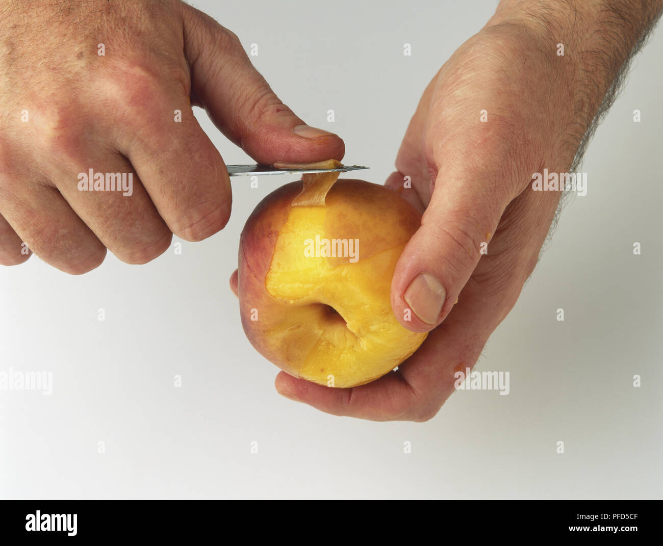 Peach being peeled with knife Stock Photo Alamy