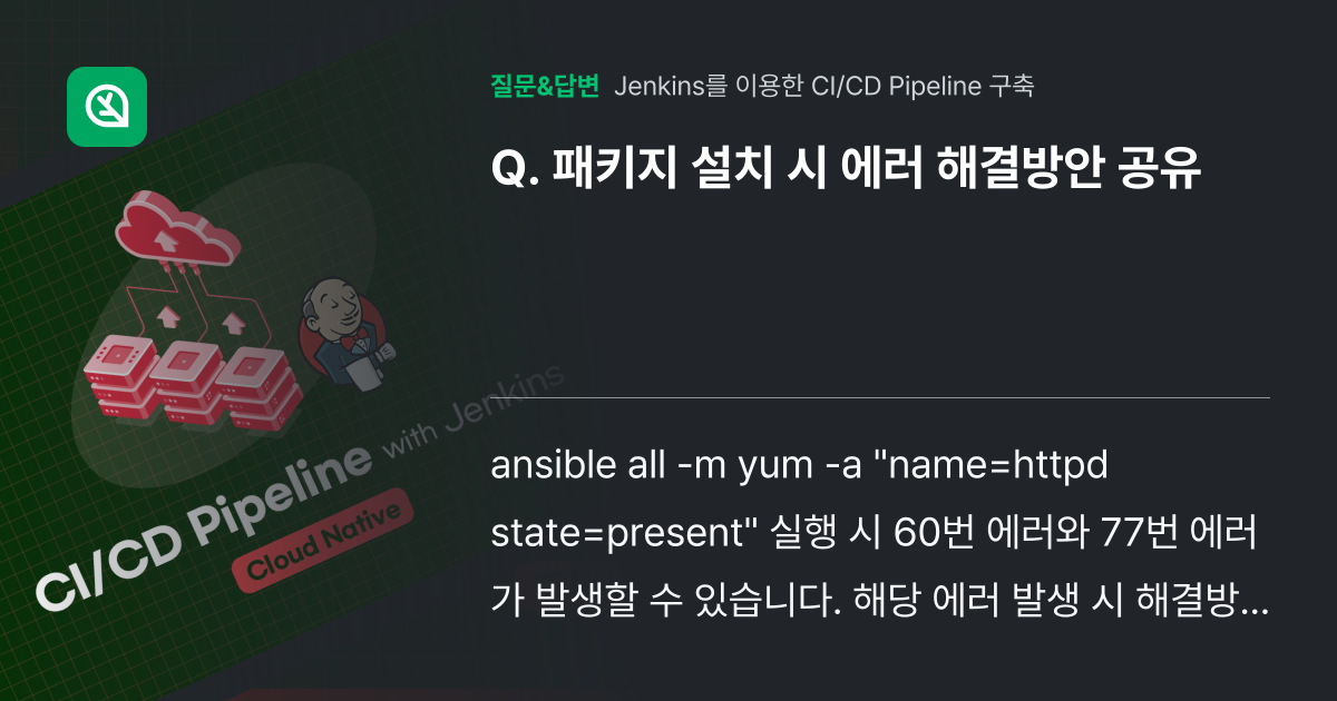 패키지 설치 시 에러 해결방안 공유 인프런 커뮤니티 질문 답변