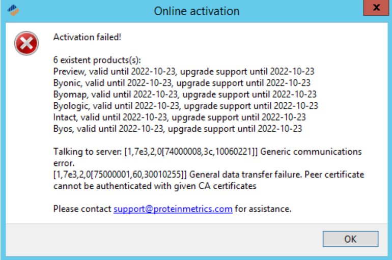 Failed to Update APIKeys due to following error code quot Peer certificate