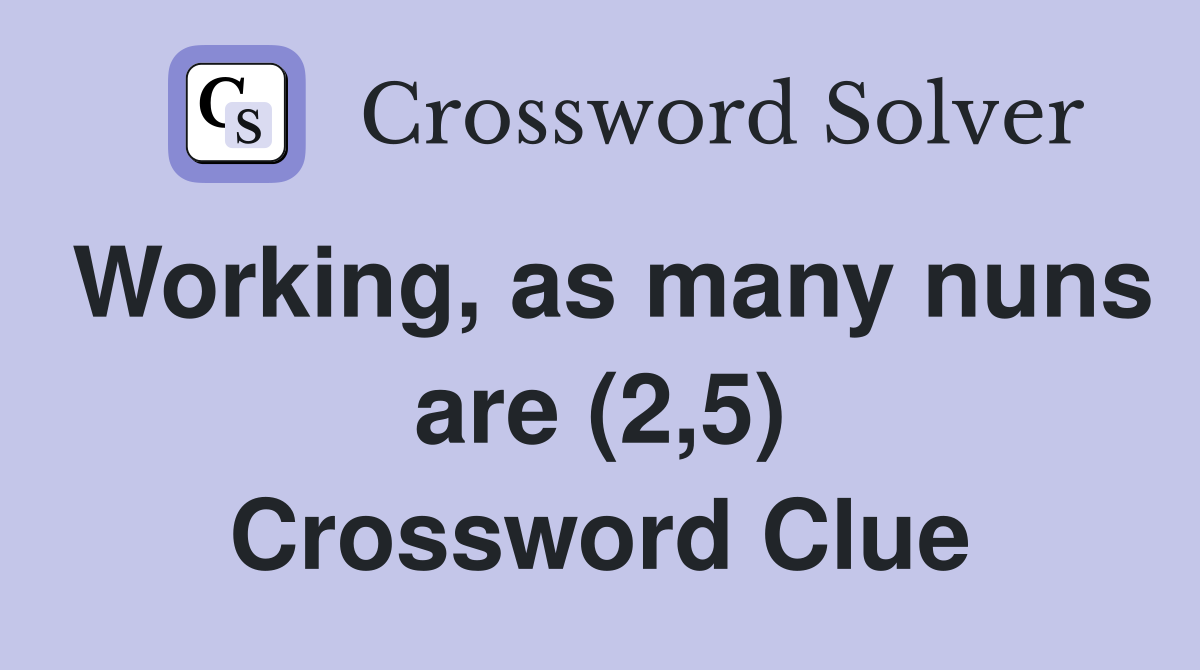 Working as many nuns are (2 5) Crossword Clue Answers Crossword Solver