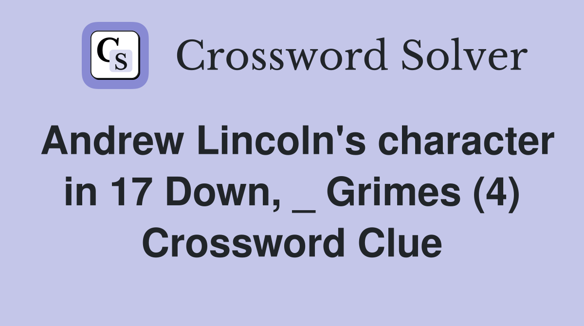 Andrew Lincoln #39 s character in 17 Down Grimes (4) Crossword Clue