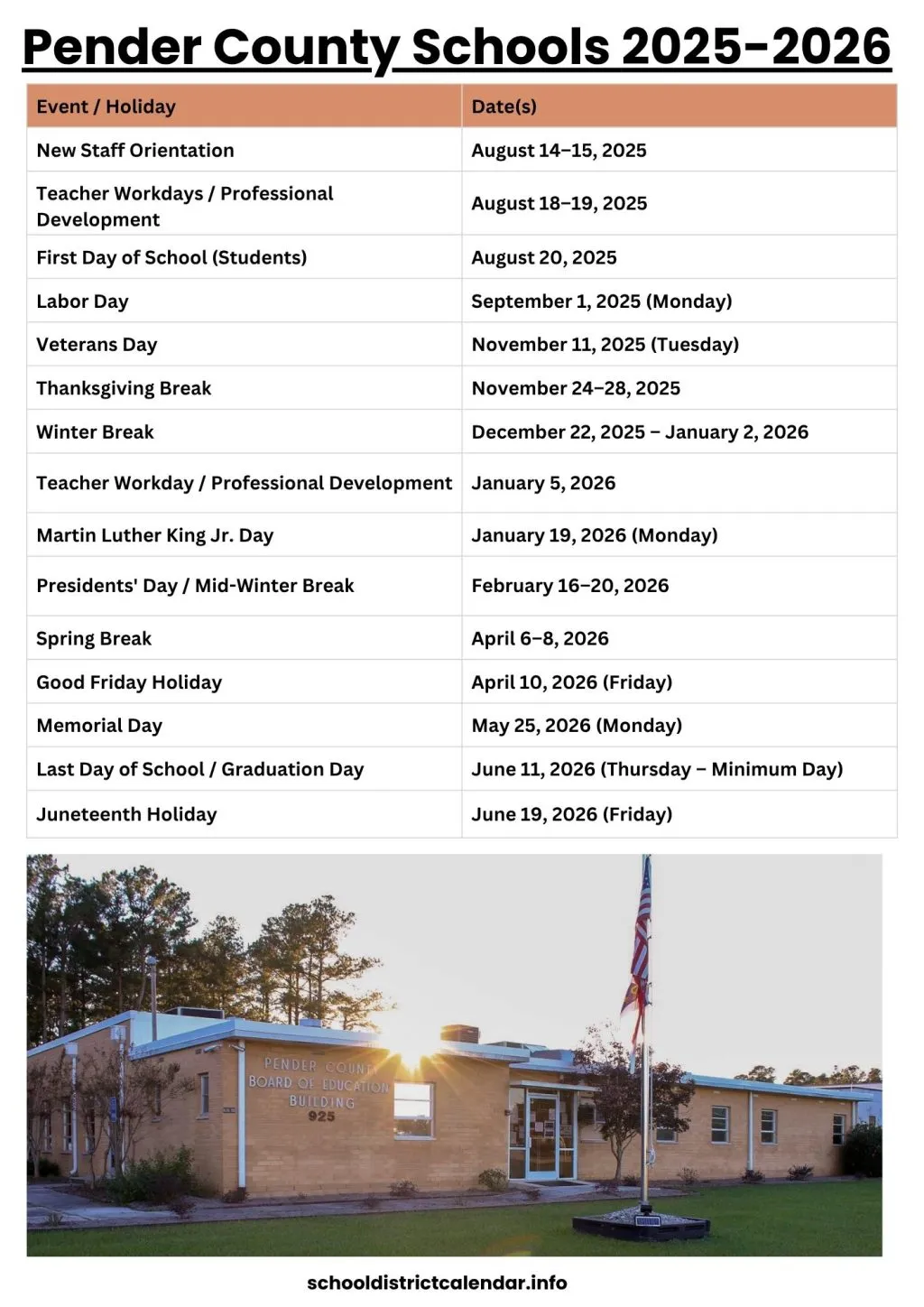 Pender County Schools Calendar 2024 2025 in PDF School Calendar Info