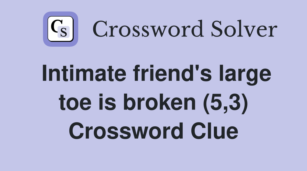 Intimate friend s large toe is broken (5 3) Crossword Clue Answers