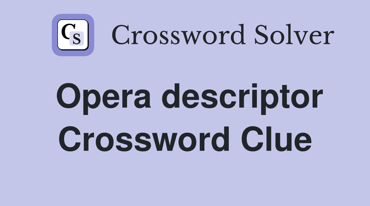 Opera descriptor Crossword Clue Answers Crossword Solver