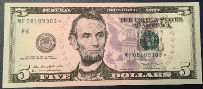 United States 2013 Replacement Star Note 5 Dollars Bill UNC Low Serial