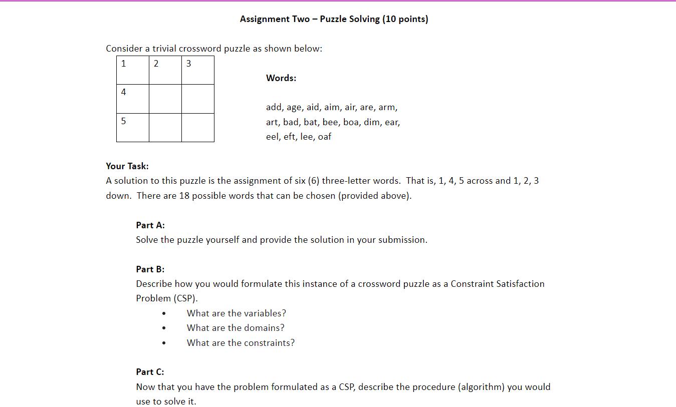 Solved Consider a trivial crossword puzzle as shown below: Chegg com