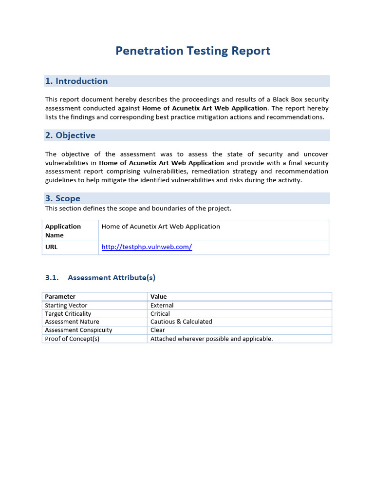 Web Pentesting Sample Report Download Free PDF Vulnerability