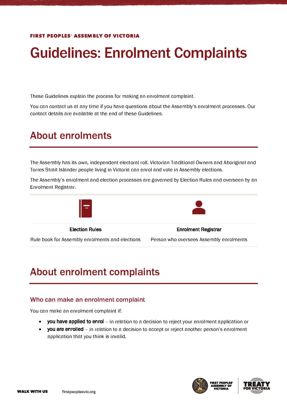Guidelines: Enrolment Complaints First Peoples Assembly of Victoria