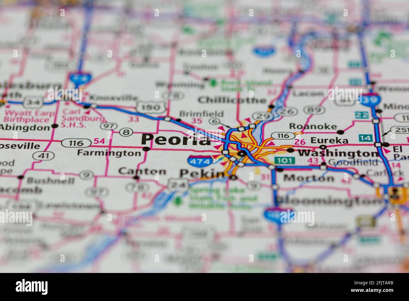Peoria illinois USA and surrounding areas Shown on a road map or