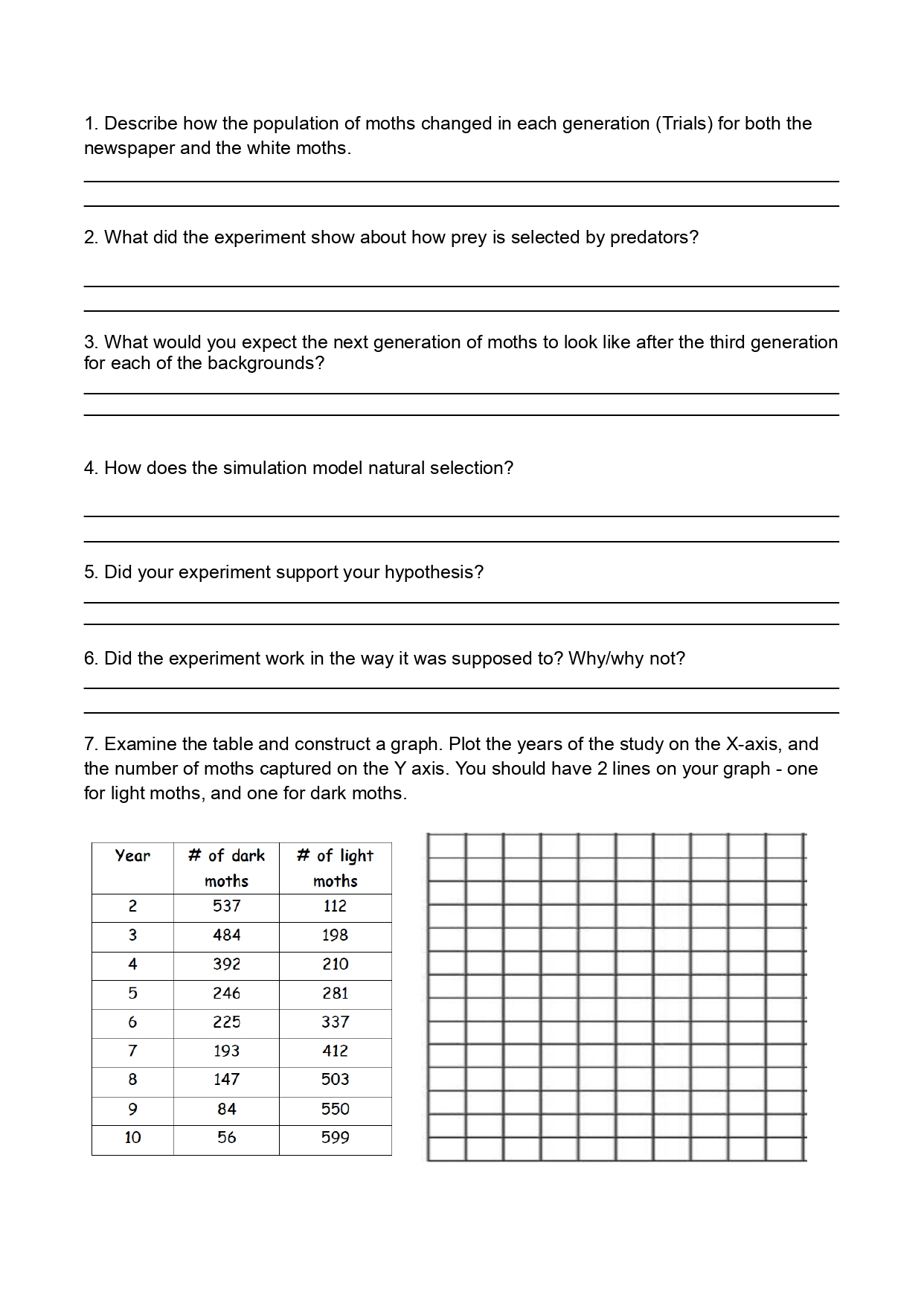The Peppered Moth Worksheet for 7th 12th Grade Lesson Planet