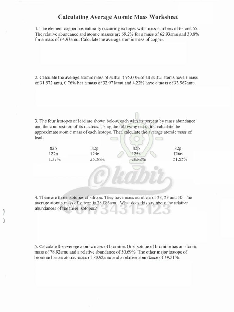 Average Atomic Mass Worksheet Answers Pro Worksheet