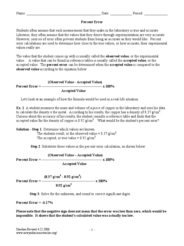 Percent Error Worksheet Chemistry at viinellieblog Blog